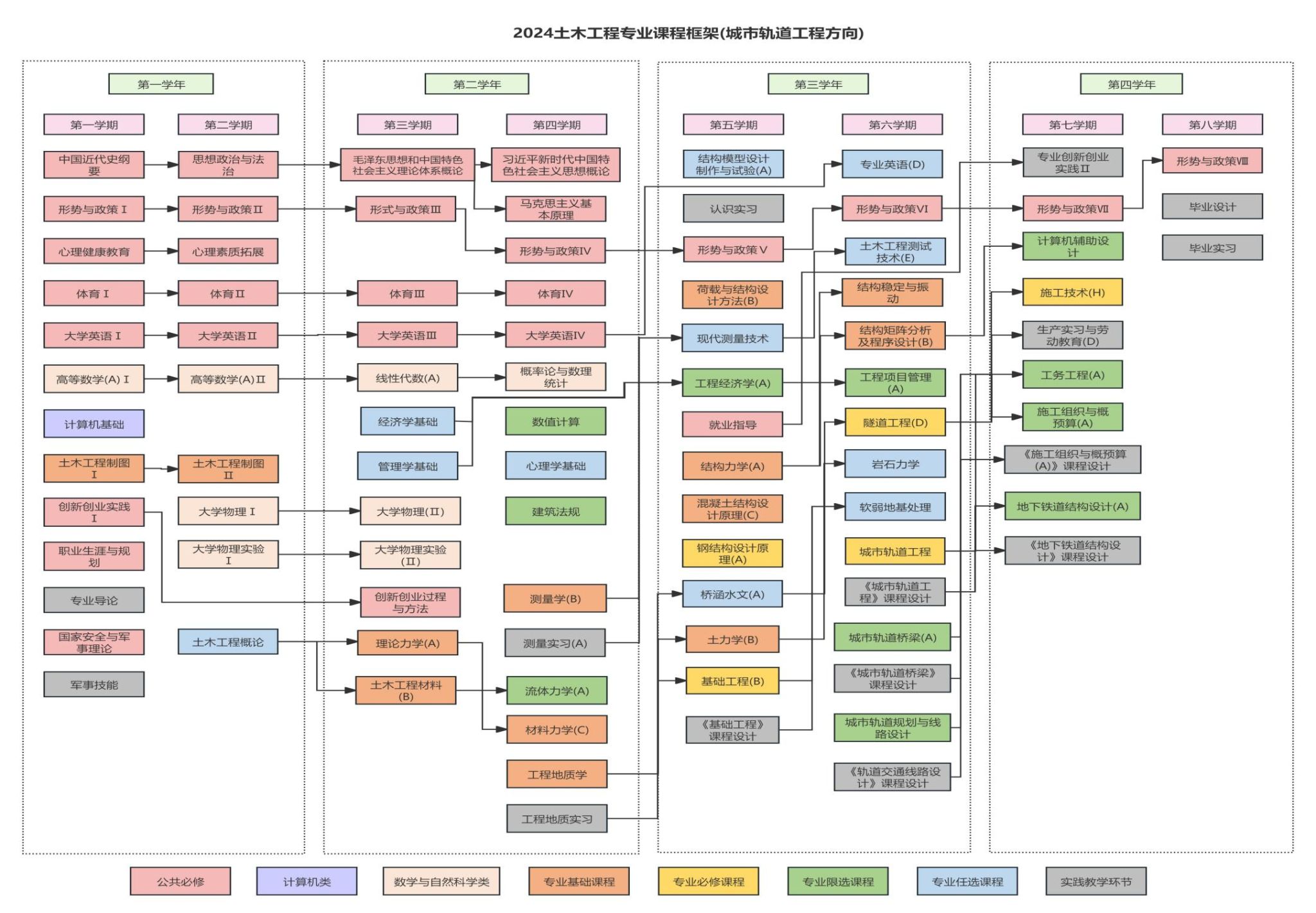 专业课平台(城市轨道工程方向) | 必修课 | 1501105970 | 基础工程 Foundation Engineering | 考查 | 2.5 | 40 | 40 |