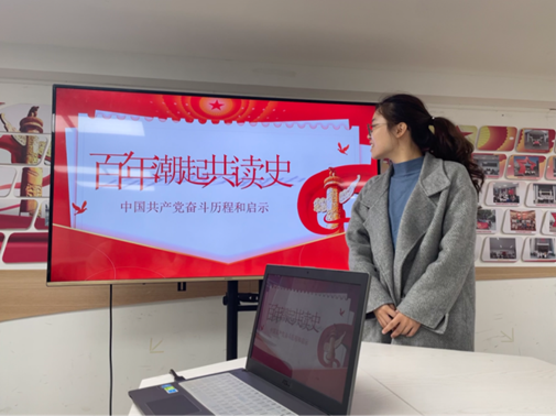 在庆祝我们党百年华诞的重大时刻、在“两个一百年”奋斗目标历史交汇的关键节点,全党集中开展党史学习教育,要求全党同志要做到学史明理、学史增信、学史崇德、学史力行,以昂扬姿态奋力开启全面建设社会主义现代化国家新征程,以优异成绩迎接建党一百周年。建筑管工供热研究生党支部为加强党史学习教育,筑牢支部成员思想政治根基,在老员工一站式服务中心开展党史学习教育,戴雨涵作为学党史汇总者的人员之一进行领学。