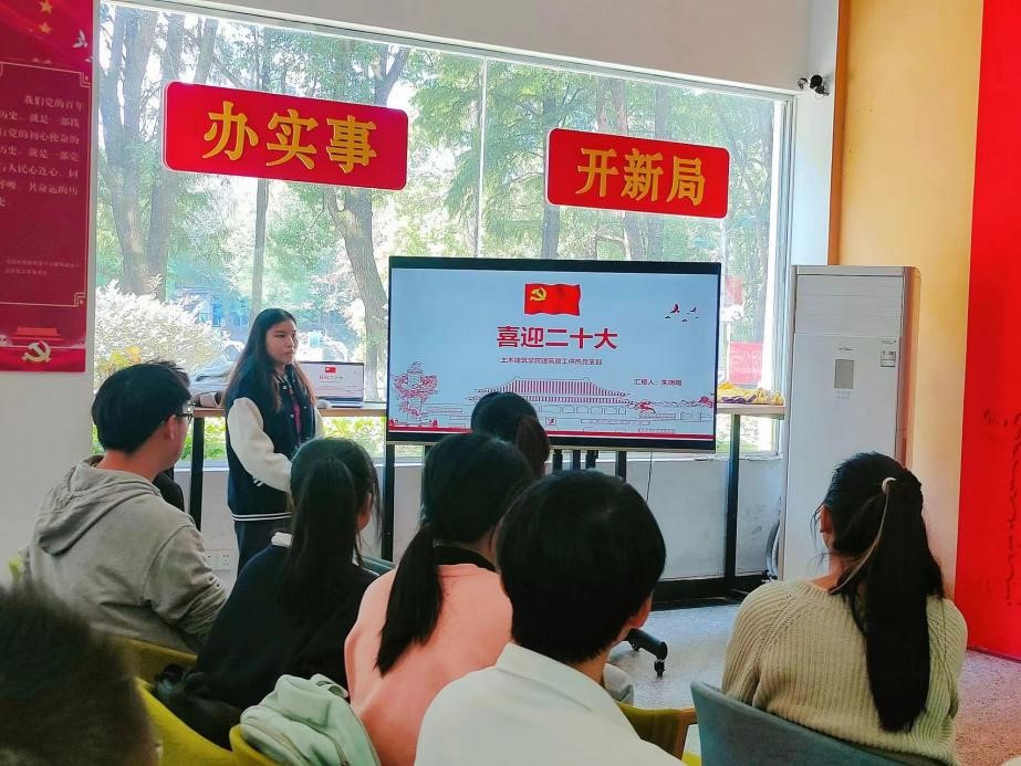 英国上市公司365建筑管工供热研究生党支部于老员工活动中心展开了支部主题党日活动,活动的主题是:学习中国共产党第二十次全国代表大会精神。整个活动分为四个部分,分别是:重温入党誓词,党员讲微党课,时事讨论以及观影《领航》。