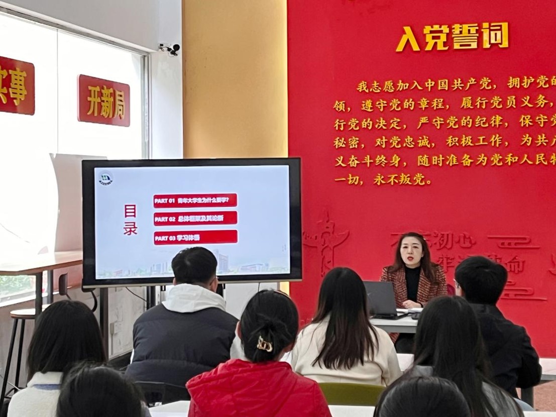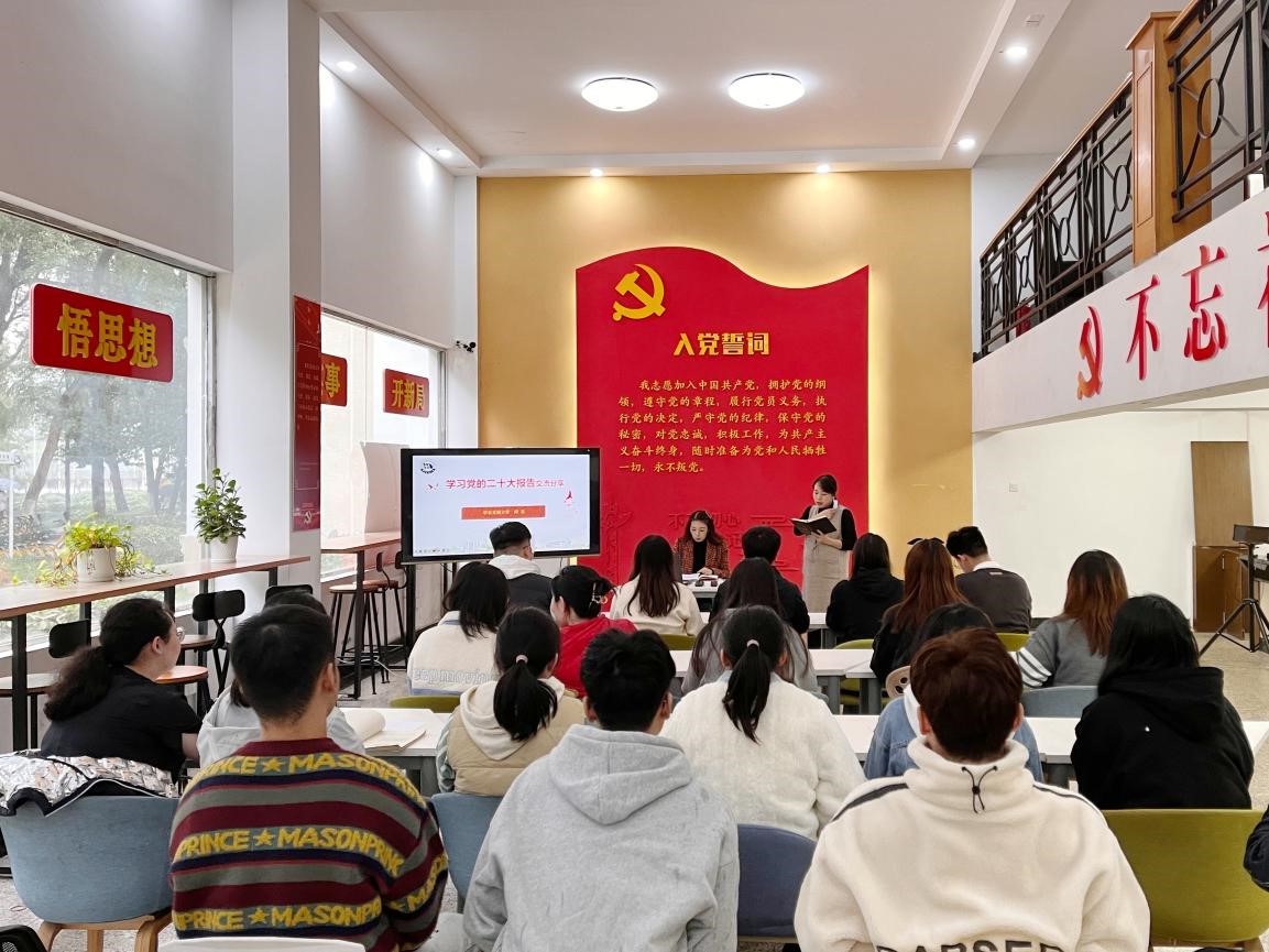 在党课活动现场,师星结合党的二十大报告,从新时代十年伟大变革的里程碑意义、马克思主义中国化时代化的精神实质、中国式现代化的丰富内涵和本质要求、全面建设社会主义现代化国家的目标任务、以党的自我革命引领社会革命的重要要求等方面作了系统梳理和深入阐释。同时针对青年老员工为什么要学、怎么学与同学们展开交流与分享。她表示,党的二十大报告强调全党要把青年工作作为战略性工作来抓,体现出党对广大青年的成长寄予厚望。新时代是广大青年成就梦想的时代,我们要认真学习领会党的二十大精神,不负时代召唤,争做有理想、敢担当、能吃苦、肯奋斗的新时代好青年。