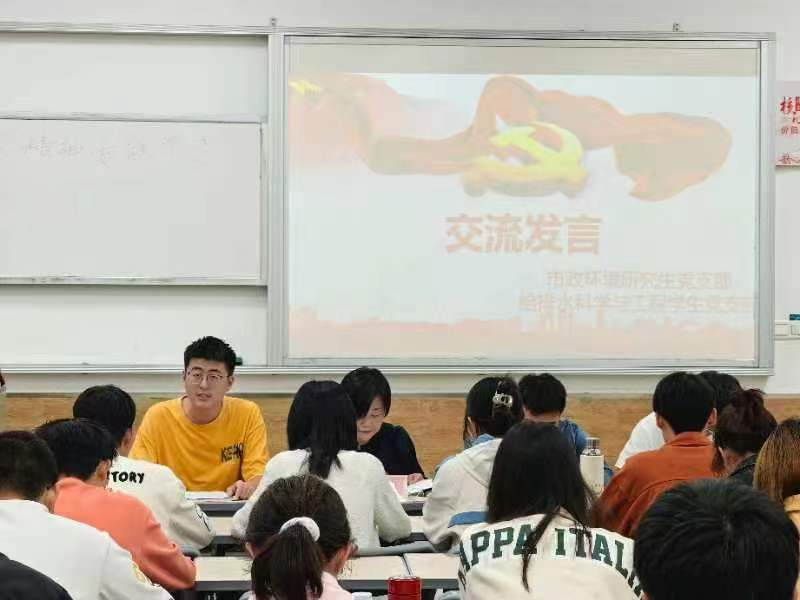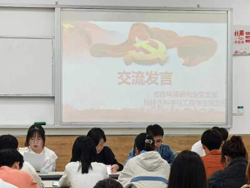 为深入学习贯彻党的二十大精神,切实把市政环境工程研究生党支部、给排水科学与工程员工党支部全体同志的思想和行动统一到会议精神上来,两个党支部在土建公司党委委员、工会主席潘荣老师的带领下一起组织开展了学习党的二十大精神宣讲会。本次会议由市政环境工程研究生党支部书记倪主业同志主持。