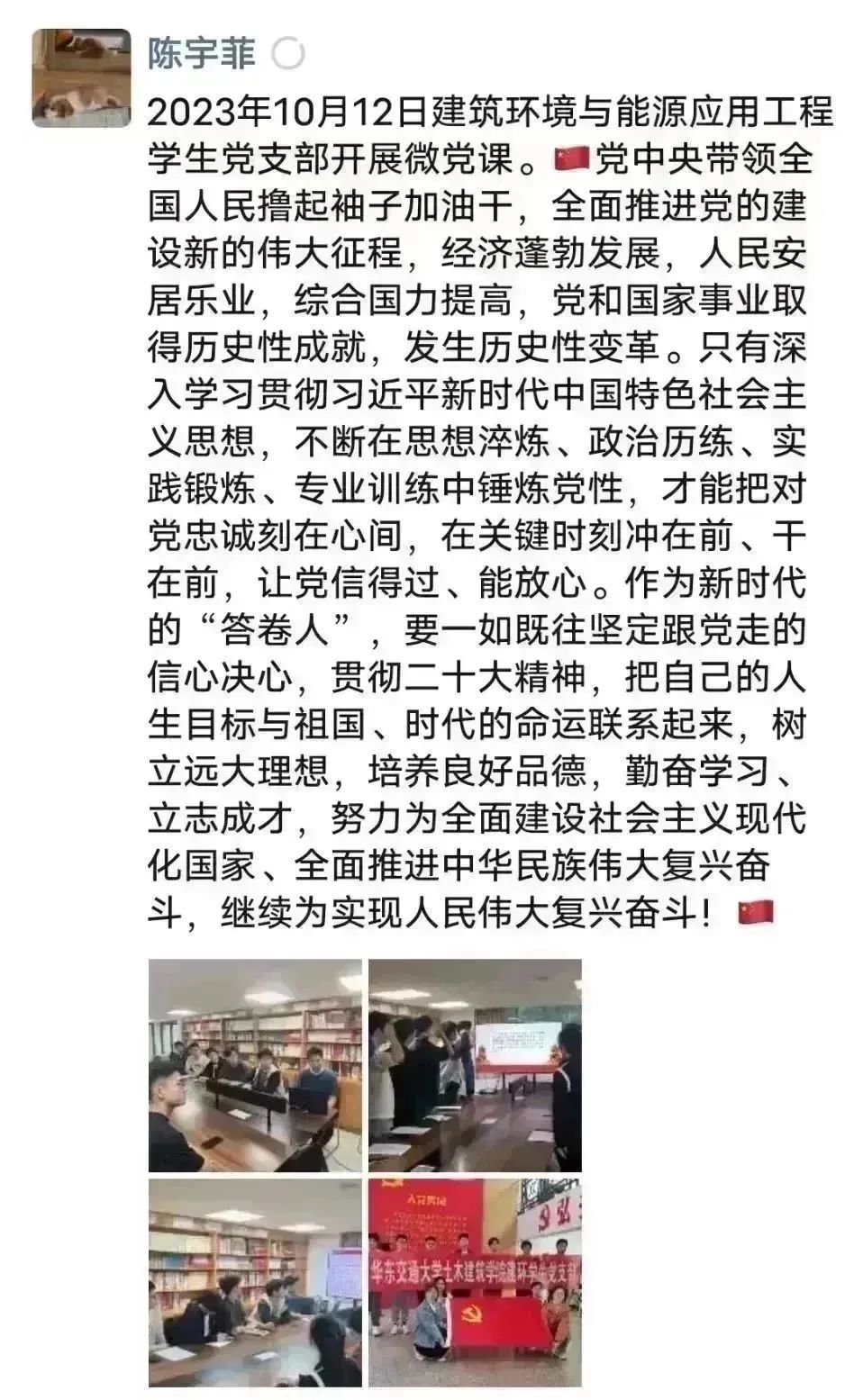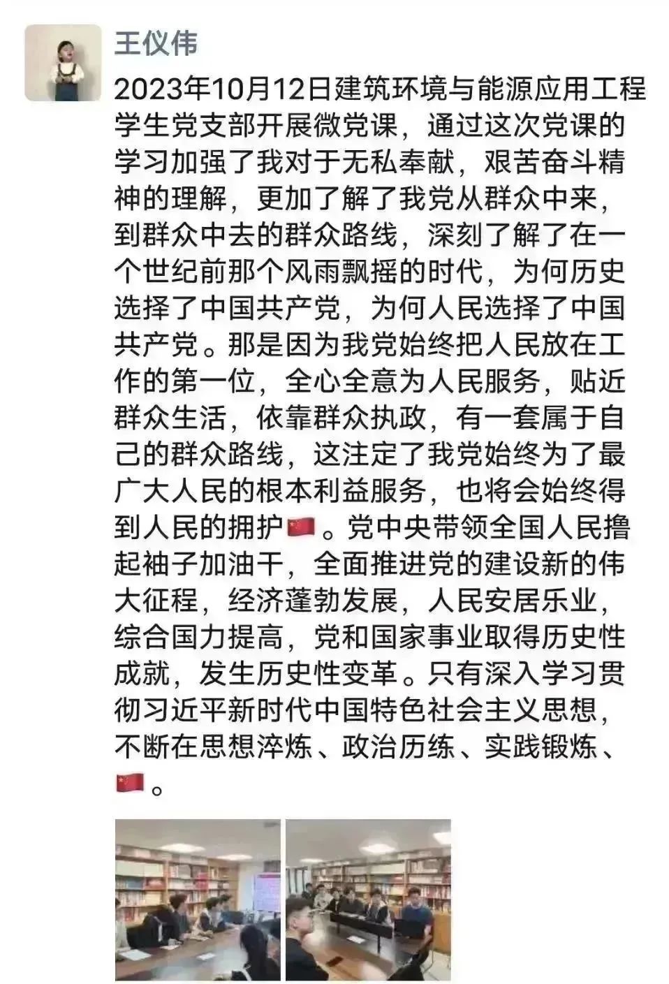 在杨学斌同志的带领下,建筑环境与能源应用工程员工党支部开展了主题为“谱写中华民族现代文明新华章”的党课。文明是一个国家、一个民族进步的标志。这次党课,目的是通过回顾改革开放以来,坚持走自己的路,秉持精神上的独立自主,增强以中国式现代化全面推进中华民族伟大复兴的信心和底气。对历史最好的继承,就是创造新的历史;对人类文明最大的礼敬,就是创造人类文明新形态。党的十八大以来,以习近平同志为核心的党中央团结带领全国各族人民,坚持把马克思主义基本原理同中国具体实际相结合、同中华优秀传统文化相结合,凝聚奋斗与思考、承继光荣与梦想,激活了中华文明的强大生命力,党和国家事业取得历史性成就、发生历史性变革。