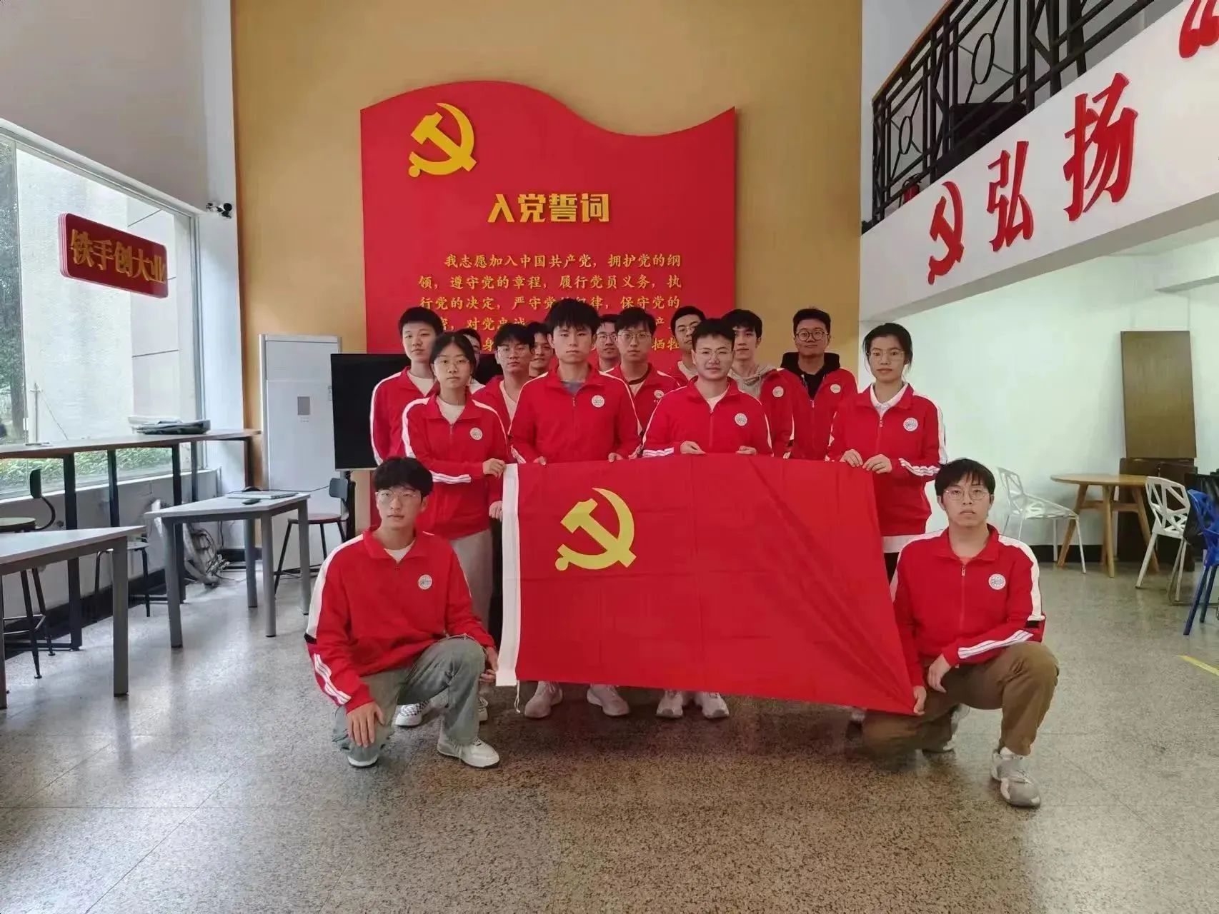 活动第一项,由徐彩浪同志带领其余同志面对党旗,重温入党誓词“我志愿加入中国共产党,拥护党的纲领,遵守党的章程,履行党员义务,执行党的决定,严守党的纪律,保守党的秘密,对党忠诚,积极工作,为共产主义奋斗终生,随时准备为党和人民牺牲一切,永不叛党。”