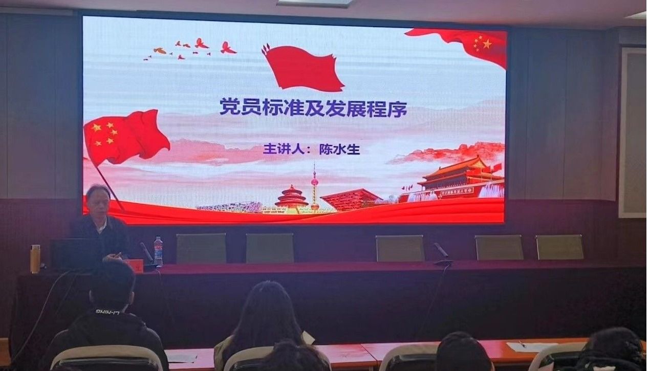 陈水生老师还强调申请入党的同志进入党组织,要严格履行入党手续,这是一项严肃的政治工作。严格履行入党手续,是对要求入党的同志所进行的严格的政治审查和实际的党员标准教育,也是为了保证新党员质量、保持党员队伍先进性和纯洁性的重要举措。他指出作为一名合格的共产党员,要能“平时看得出,难时站得出,危时豁得出”。