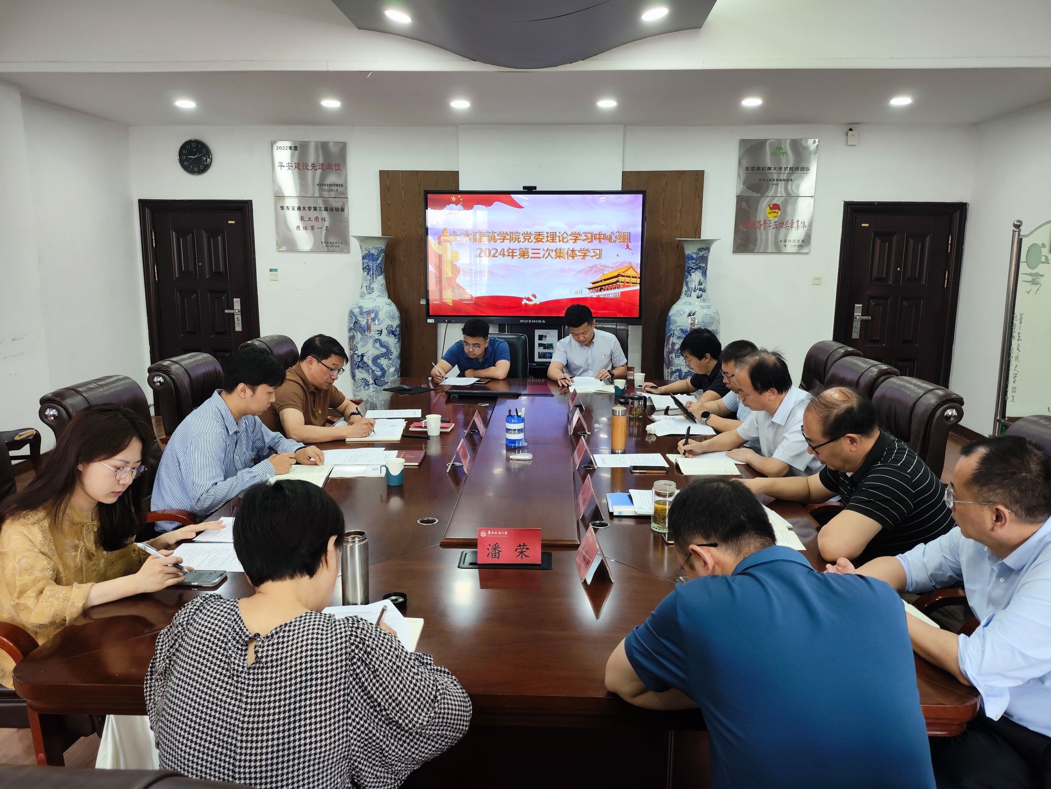 5月22日,公司党委理论学习中心组在教9栋302楼会议室召开2024年第三次集体学习会,主要学习《中国共产党纪律处分条例》中关于政治纪律的内容。本次会议由公司党委书记、理论学习中心组组长陈水生主持,党委办公室、董事长办公室主任陈科,外国语学院辅导员王伟峰作为列席旁听工作组出席会议。公司党委委员、院班子成员、党政办副主任、党委组织员、结构工程教工党支部书记、给排水员工党支部书记参加会议。