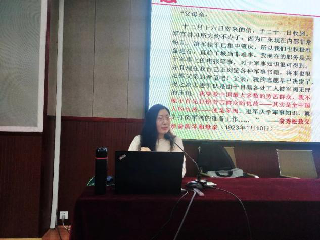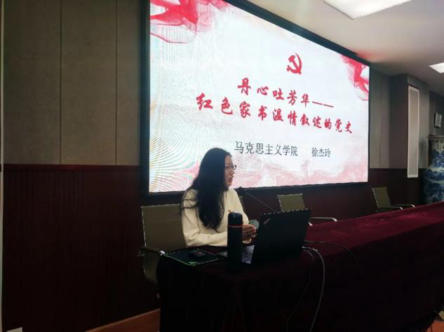 党课伊始,徐杰玲通过介绍习近平总书记在2月20日党史学习教育动员大会的重要讲话,深刻阐述了党史学习教育的重要意义。她指出,历史是最好的教科书,中国的革命历史是最好的营养剂,我们要把党的历史学习好、总结好,把党的成功经验传承好、发扬好。徐老师以“家”字为切入点,通过讲述“鱼传尺素”,“鸿雁传书”等故事介绍家书的悠久历史及家书传递的多样性,引出“红色家书”指向性、真实性、教育性的特征。