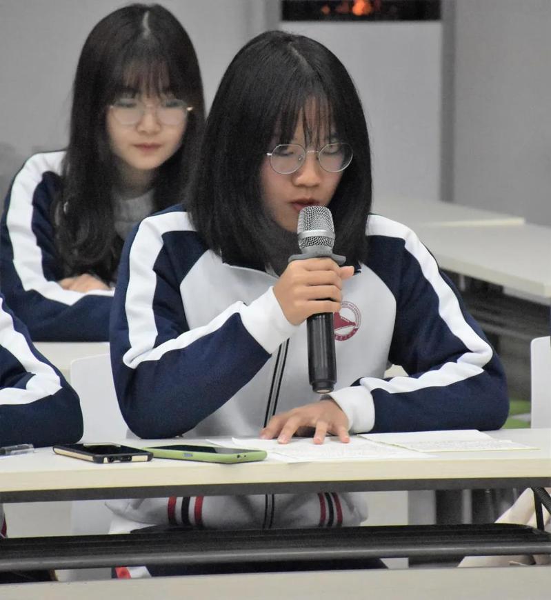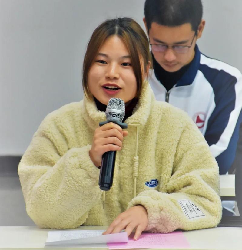 研究生代表陈晶为大家发言,她用她的田径经历告诉同学们要做一个努力的人,有准备的人,并鼓励大家在兼顾学业的同时也要积极运动。官伟也用自己的亲身经历激励大家要争做花椒先锋,不要荒废学业,对自己负责。