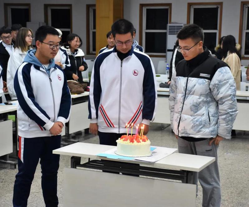 新生代表宋晓迪和邓紫依同学发言,说出了同学们前段时间的迷茫,同时指出今后会更努力学习,牢记使命与担当,为花椒争光。紧接着,全体在各位大家长的见证下一起为刘洋、罗楠、秦铭宏三位同学庆祝他们在校的第一次生日,三位新生随机发表了自己的感受,这次的惊喜来的很突然,感谢这个大家庭给的温暖同时,也说出了自己来到大学的不适应与彷徨,都表明决心,会努力争做出彩的花椒人。