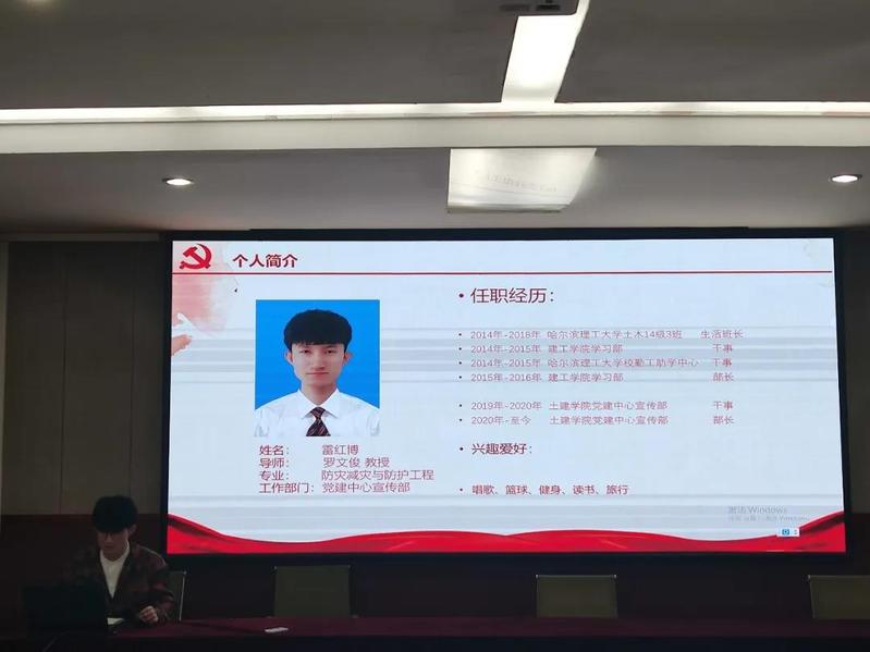 “只有积极地向党组织靠拢,我才能不断进步,才能成长为一名合格的社会主义现代化事业的建设者和接班人。因此,我慎重地向组织提出转为预备党员的申请。我会在今后的学习、工作、生活中时时刻刻严格要求自己,给同学们做出好榜样,争当先锋模范。”12月7日上午9点,公司在土建学院200会议室召开2020年下半年土建学院研究生拟发展对象答辩。公司党委组织委员万雯怡老师、研究生各支部书记及支委代表以及公司14名研究生拟发展对象参与此次答辩。会议由党建中心主任王加俊主持。