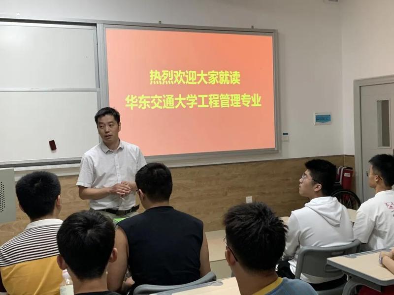 首先,王老师代表工程管理专业教师对2020级新生的到来表示热烈的欢迎和祝贺。王老师介绍了工程管理专业的团队力量以及近几年该系在教学、科研、学科学位建设、国际交流与合作等方面取得的成绩和成果,介绍了大一今年老师的配备情况和教学课程的安排情况。