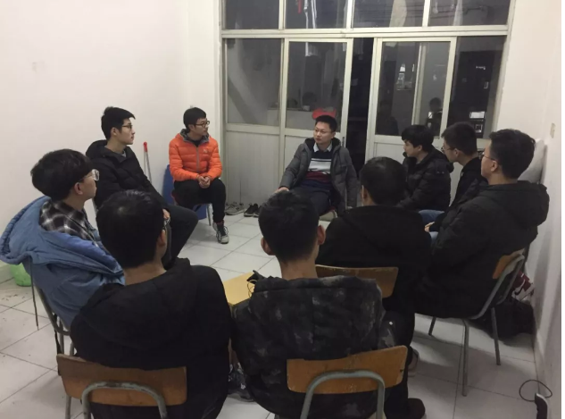 饭后,老师前往员工宿舍进行走访考察。在发现寝室因漏水而得不到解决之后,老师记录下详细情况,并向学校汇报。之后,老师与同学在客厅中畅聊,上到国家改革开放40周年等大事,下到员工学习生活等问题。