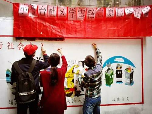 多才多艺的志愿者们各司其职,一笔一划描绘出五彩缤纷的雷锋墙。那些可爱的小图案在他们笔下栩栩如生,活灵活现,社区居民对此赞不绝口。