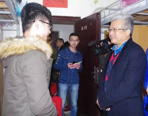公寓里的员工见到汪书记都热情地打招呼,汪书记也微笑着向各位同学招手示意,并提前祝福各位同学新年快乐。活动结束后,汪立夏站在员工公寓向窗外眺望,感叹我们美丽的校园风景,招呼各位陪同领导一起欣赏美景。