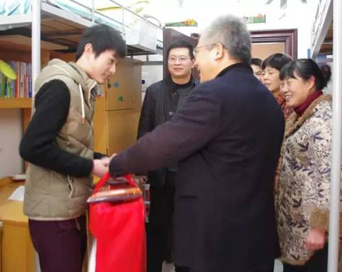 收到汪书记送来的东西,来自14级土木工程4班的刘揭润表示很开心,汪书记亲自给他送来这些物品让他非常感动,他更加认识到学校是关爱我们每一位员工的,自己今后也会加倍努力,回报学校。