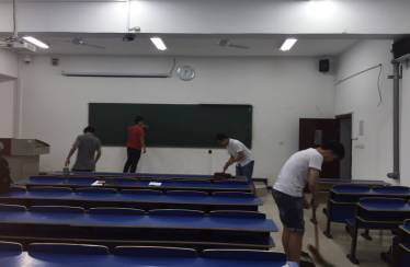 我们全体同志分工明确,在分好责任的同时大家又互帮互助,你扫我撮,整个志愿服务场景显得各位和谐动人,经过我们的共同努力,每件教室都打扫得十分整洁。