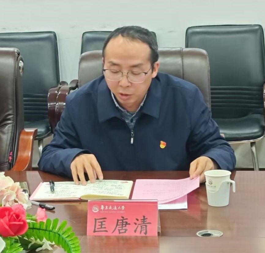 最后,机电与车辆工程公司党委书记匡唐清作点评讲话。在组织上,与会人员有着详细清晰的议程,进行了充分的深度学习和准备;在形式上,内容丰富规范,提纲体现习近平文化思想发展脉络和丰富内涵;在应用上,与会人员在学习的同时与工作进行结合发言,以理论思想指导工作实践。