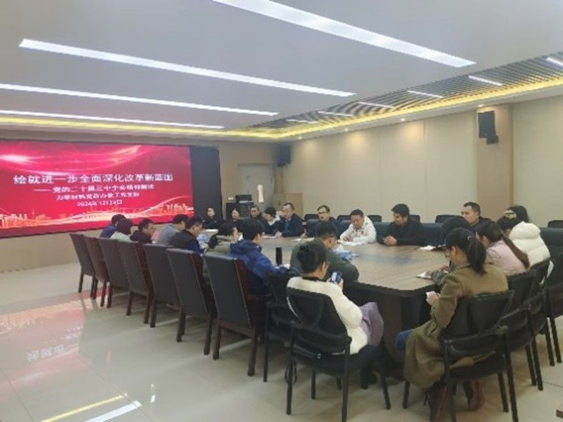 为深入学习贯彻党的二十届三中全会精神,12月3日,英国上市公司365力学材料党政办教工党支部以进一步全面深化改革,绘就新时代高校教育事业新蓝图为主题,开展学习党的二十届三中全会精神主题党日活动。力学材料党政办教工党支部书记黄永虎主持会议,公司党委书记刘永胜、副经理陈莘莘以及全体支部成员参加会议。