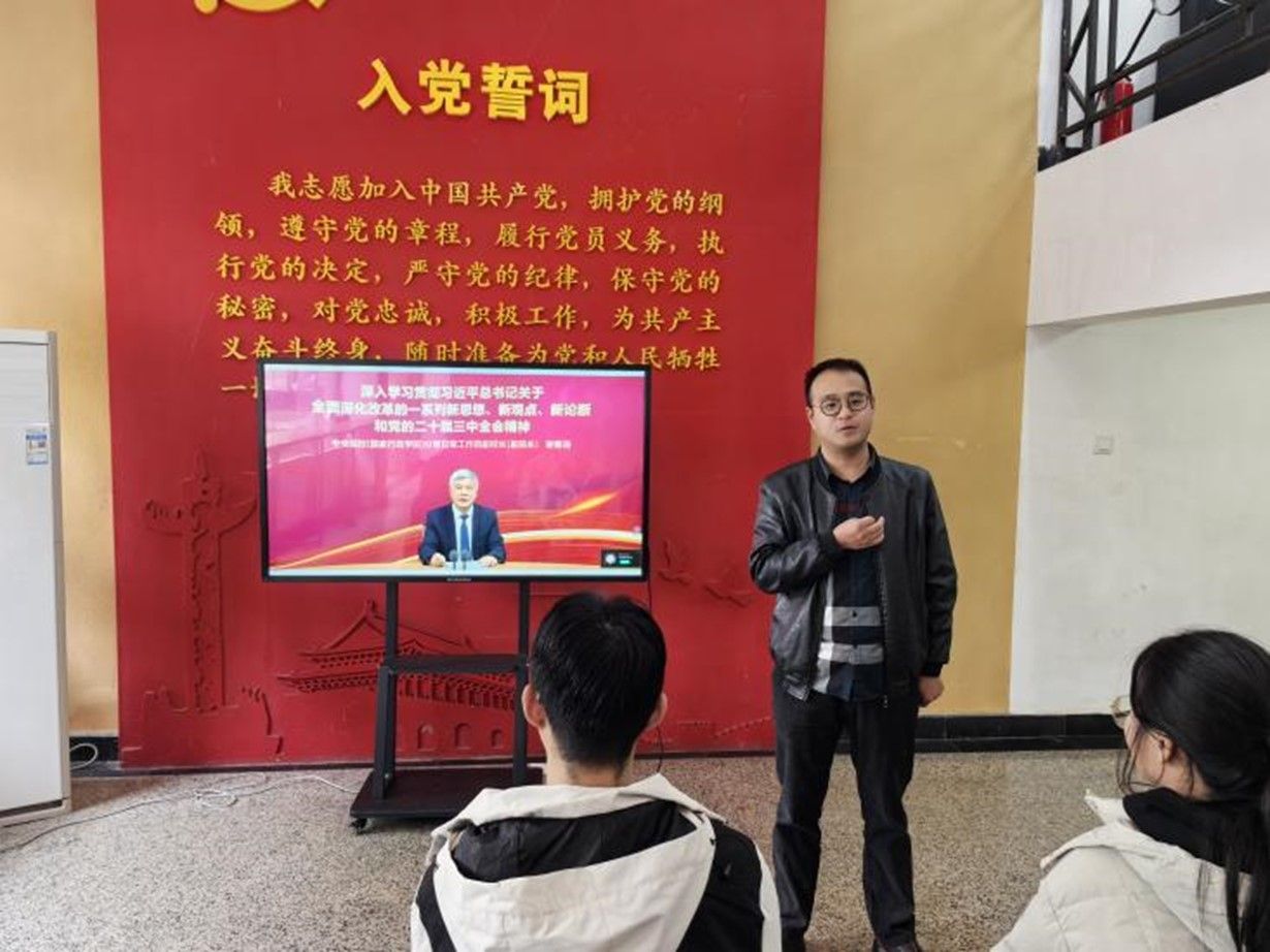 麻宏强围绕党的二十届三中全会的核心内容与重要意义进行了概括性阐述。同时,他结合个人实际情况与学习经历,详细论述了党的二十届三中全会精神与当前教育体制改革的重要关系。他提到,教风与学风建设是相辅相成的,教师与员工的共同努力是实现教育高质量发展的基础。最后,他指出全体成员要以党的二十届三中全会精神为指引,将全会精神融入日常学习,将理论学习成果转化为实践动力。
