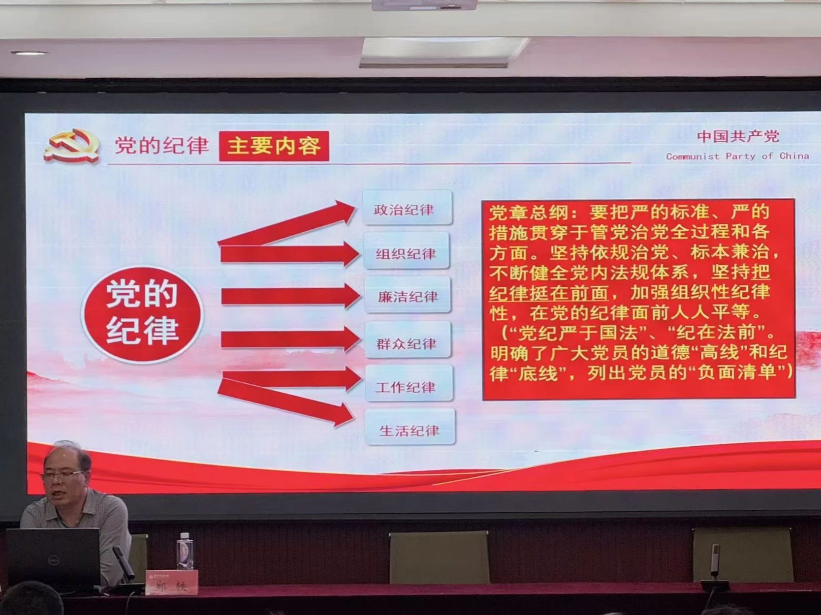 郑轶指出,党的纪律是全体党员必须严格遵守的行为准则,是维护党的团结统一、推动党的事业顺利前行的重要保障。他强调“党纪严于国法”,鼓励学员们认真学习党的纪律,不断增强纪律意识。