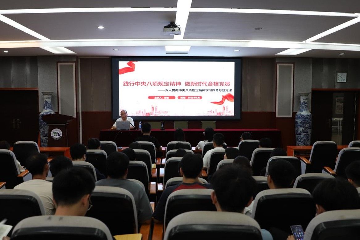 公司党委委员、副经理方焘联系岩土工程研究生党支部和桥梁研究生党支部,以“贯彻落实中央八项规定精神学习教育”为题讲授专题党课。首先明确了深入贯彻落实中央八项规定精神的重大意义。他强调,全体党员必须深刻认识中央八项规定精神的重要性,时刻保持高度警醒,自觉筑牢思想防线,将纪律规矩内化于心、外化于行。