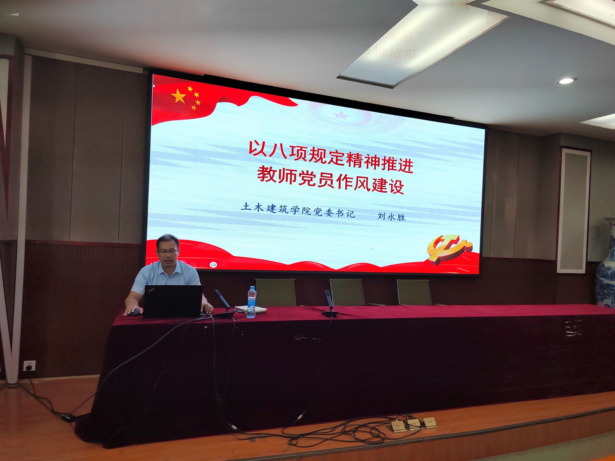公司党委书记刘永胜联系力学材料党政办教工党支部、桥梁工程教工党支部及茅以升班员工党支部,以“以八项规定精神推进教师党员作风建设”为题讲授专题党课。系统解读了中央八项规定精神的重大意义、丰富内涵及实践要求,通过剖析近年来违反中央八项规定精神的典型案例,警醒党员干部要时刻保持清醒的头脑,严格遵守党的纪律和规矩。