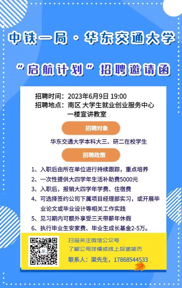 为优化关键岗位人才配置及核心岗位人才储备,提升企业人才竞争力,中铁一局在部分院校面向2024届毕业生在校员工实施“启航计划”。员工与中铁一局签订《“启航计划”就业意向书》后,列入“启航计划”专项管理,享受以下政策: