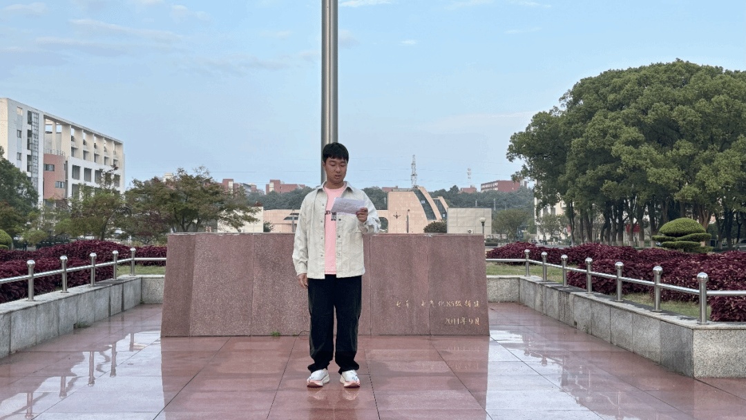 员工代表建环2025-2班常玉洁同学以“致敬反法西斯胜利荣光,以青年之姿赴和平之约”为主题进行国旗下的讲话。站在反法西斯胜利80周年的历史节点上,我们深知今日的岁月静好,是无数先烈用生命换来的珍贵成果。作为未来的建设者,我们当以理想为帆、以奋斗为桨,将和平信仰融入专业学习,把强国志向注入日常行动,用青春的智慧与汗水,为守护和平、建设更强大的祖国贡献力量!