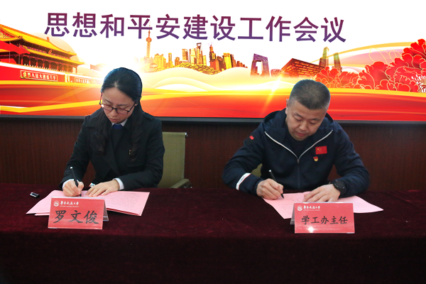 会后,党委书记、经理与班子成员、教研室主任、实验中心主任、学工办主任、党政办主任、华大公司总经理签订2021年度平安建设目标管理责任书、消防安全责任书。