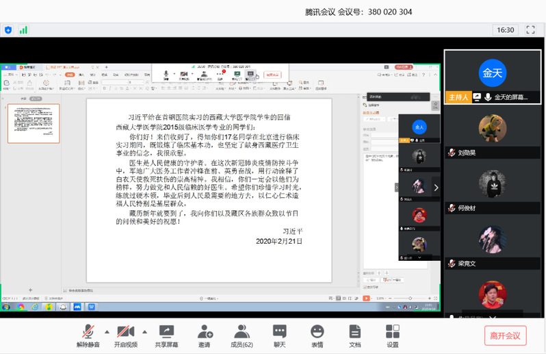 你们好!来信收到了,得知你们17名同学在北京进行临床实习期间,既锻炼了临床基本功,也坚定了献身西藏医疗卫生事业的信念,我很欣慰。