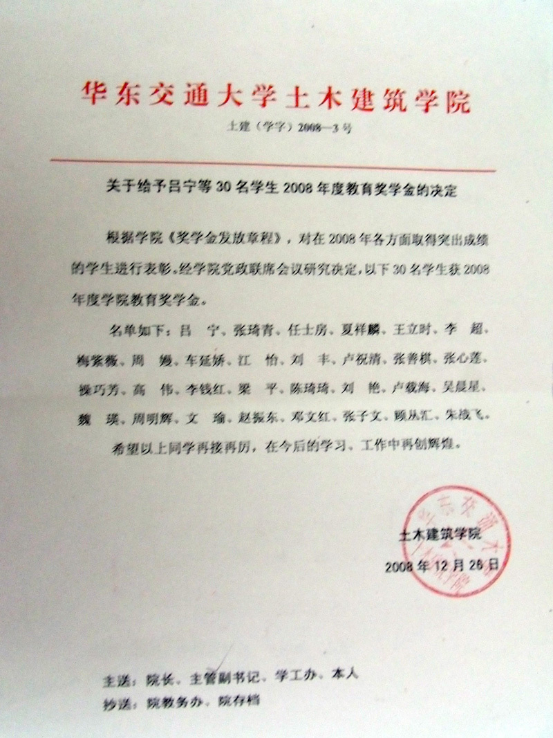 2008年教育基金奖励名单