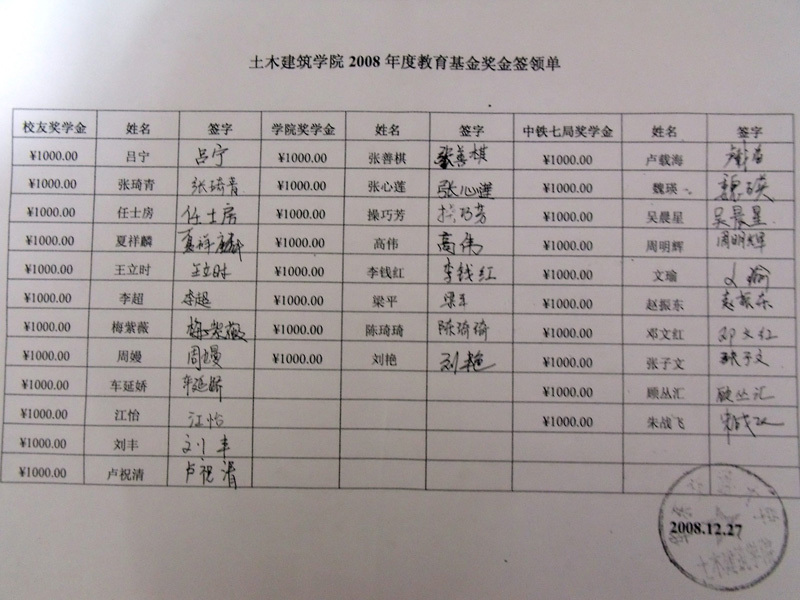 2008教育基金奖金签收单