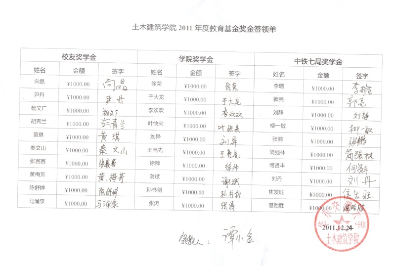 2011教育基金奖金签收单