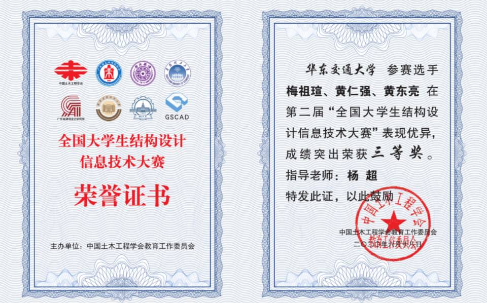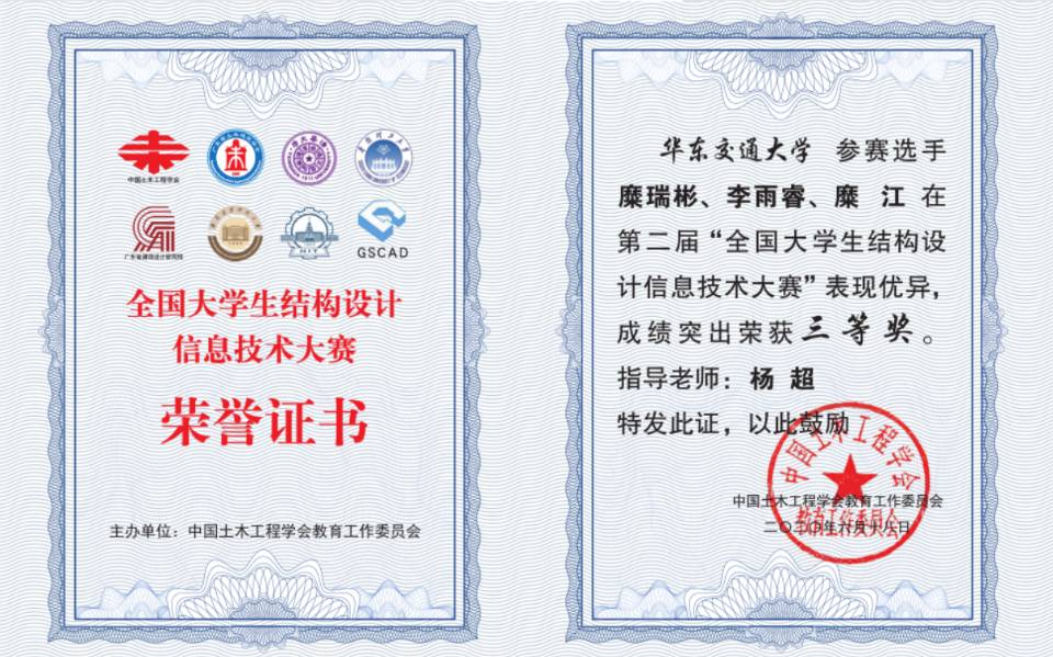 6月30日,“第二届全国老员工结构设计信息技术大赛”获奖名单揭晓,英国正版365官方网站土木工程学院3支参赛队伍在结构工程教研室杨超博士的指导下获三等奖3项,在此次竞赛中,公司学子以优异的成绩为公司争得了荣誉。本次竞赛从发布竞赛通知到作品提交,历时234天,共有来自清华大学、浙江大学、天津大学等341所高校的2140支队伍参加,提交作品888份。