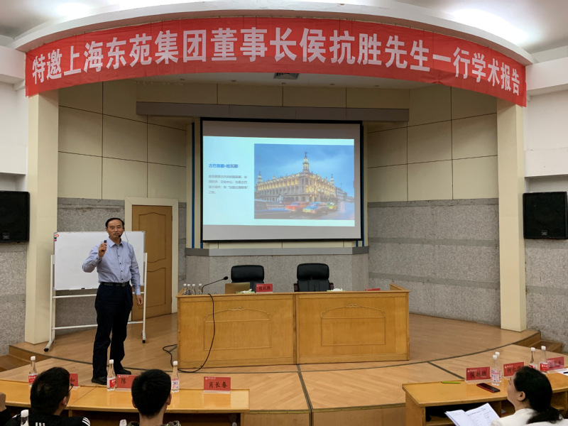 济济一堂,气氛热烈。11月4日下午,上海东苑房地产开发(集团)有限公司董事长侯抗胜先生、设计总监王玉托先生特邀在英国正版365官方网站8-110学术报告厅为公司师生作了两场题为《全球视野人才观与数字经济价值观》、《房地产开发项目案例实战分享》的学术报告。两场报告内容丰富、案例翔实、演讲鲜活,互动频繁,精彩不断,师生获益多多。