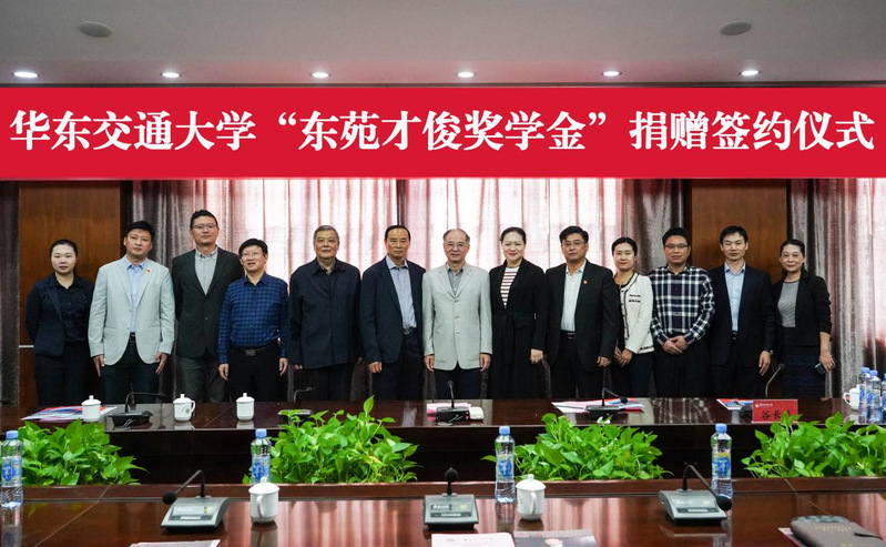 对外联络处处长、员工工作办公室主任、教育发展基金会理事长、法人罗侃与上海东苑房地产开发(集团)有限公司副总裁何红萍员工共同签署了“东苑才俊奖学金”捐赠协议。