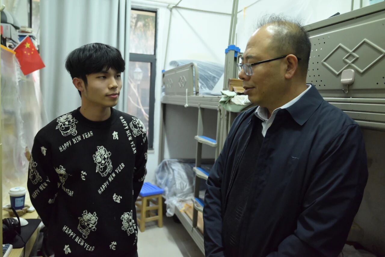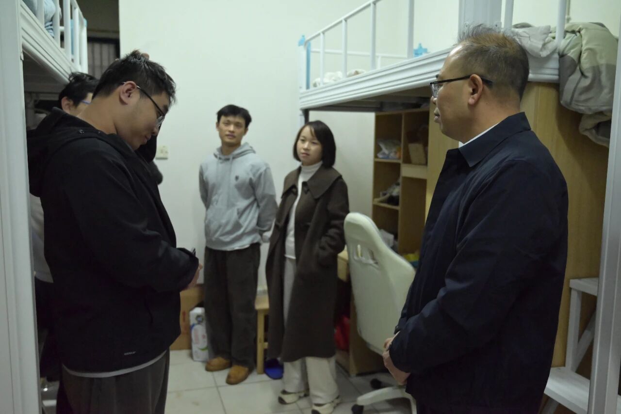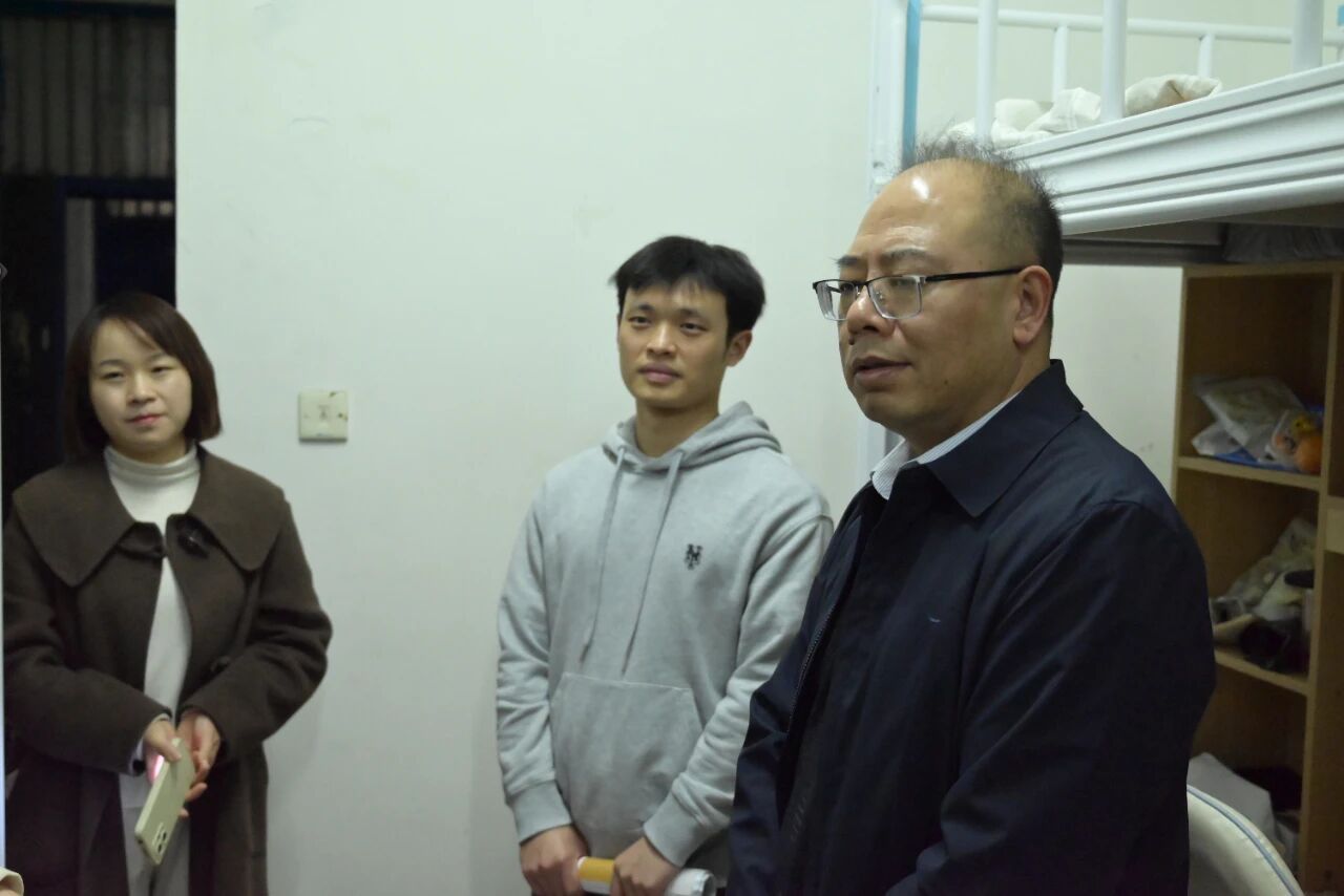 检查过程中,庄海洋与同学们亲切交流,全面了解研究生学业进展和寒假安排等情况,叮嘱研究生要合理安排好假期的学习与生活,确保学业任务顺利完成。同时特别强调要时刻绷紧安全这根弦,严格遵守用电安全和实验操作规程,同学之间要相互照应、相互提醒,共同维护员工安全。针对检查中发现的一些安全隐患和环境卫生等问题,现场提出要求整改到位,并叮嘱相关负责人还要经常性对研究生工作室、实验室、员工寝室等场所进行安全检查,消除火灾等安全隐患,确保寒假期间安全稳定。