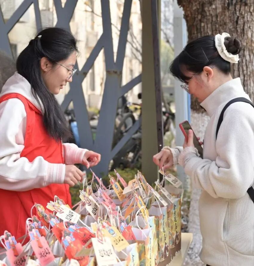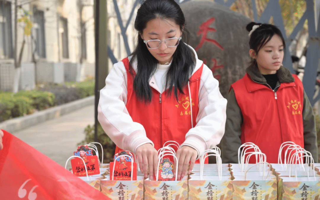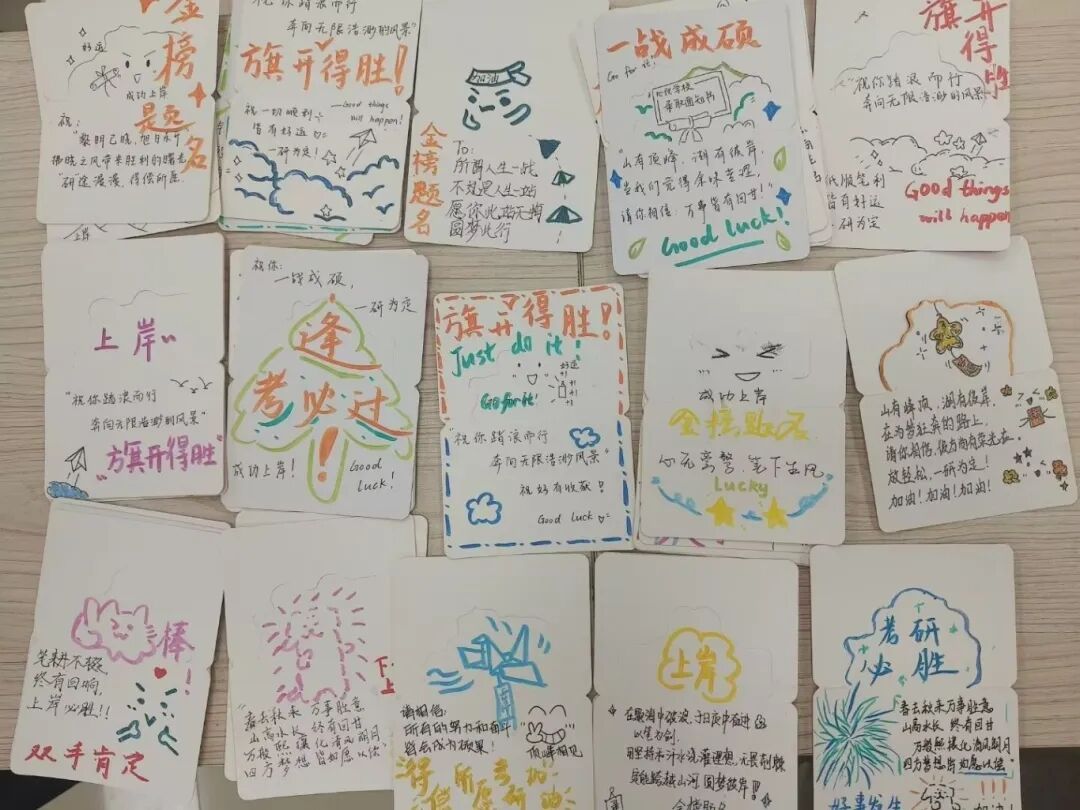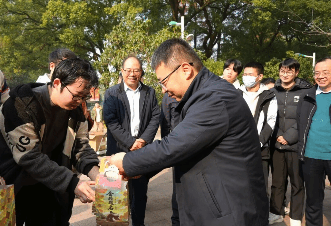 一份份精心准备的福袋传递到考研儿的手中,袋中甄选的暖心好物,既为冲刺阶段的学子补充备考能量,也满载着学院的美好期许与诚挚祝福。袋中香气扑鼻的零食、贺卡上富有力量的话语以及领导老师们的加油打气通通化为同学们砥砺前行的利剑与从容不迫的勇气。“嗯,我能行,我一定行!”