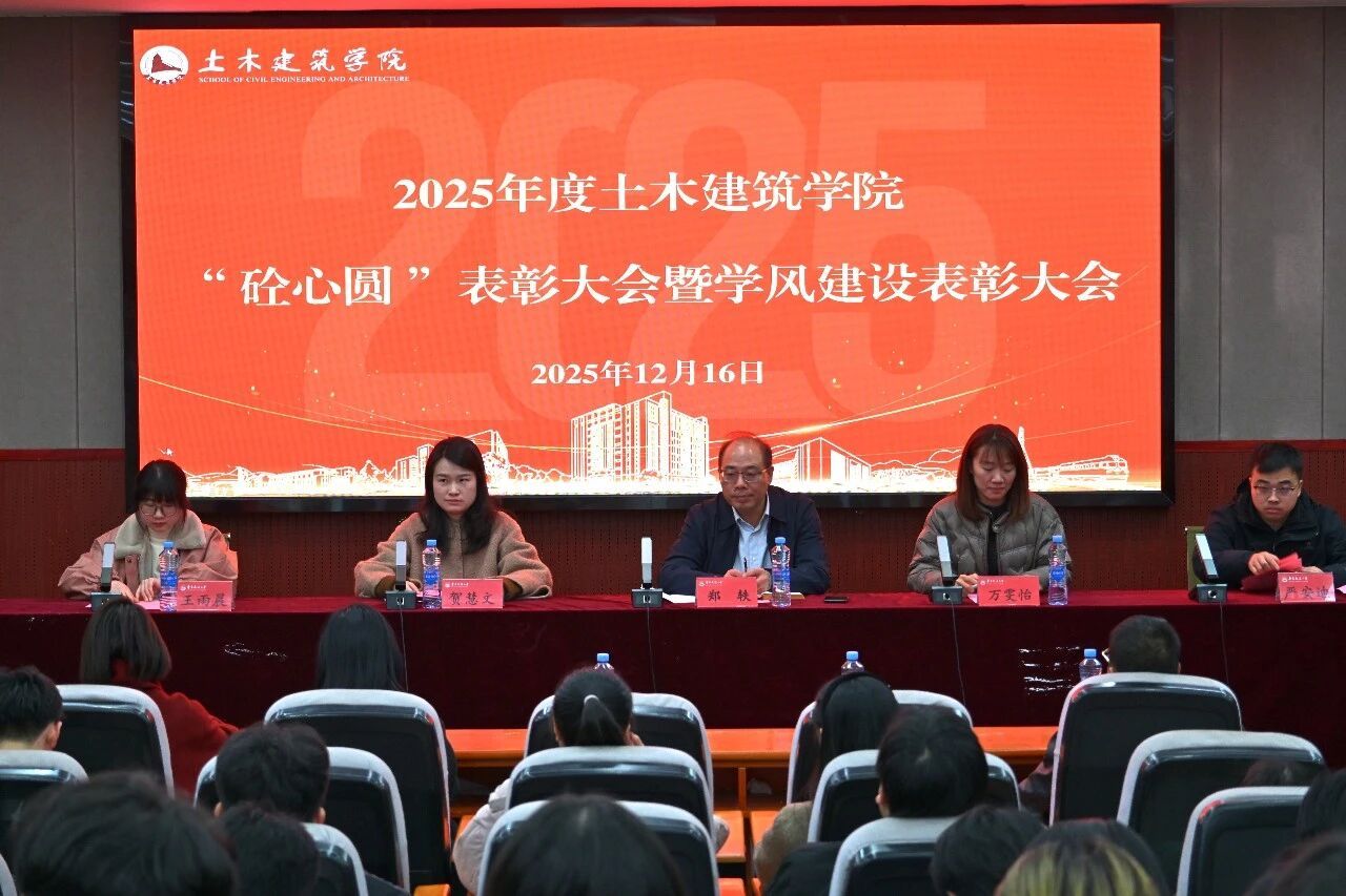 为表彰先进、树立典型,激励全体员工干部勇担使命、砥砺奋进,进一步推动学院员工工作高质量发展,12月16日晚,土建学院在土建楼200报告厅举行2025年度“砼心圆”先进集体和优秀个人表彰大会暨学风建设总结表彰会。公司党委副书记郑轶、全体辅导员出席会议,学院团委与员工会、研分会全体成员、获奖员工和班级员工代表参会。表彰会由王梓霖、罗雨菲主持。