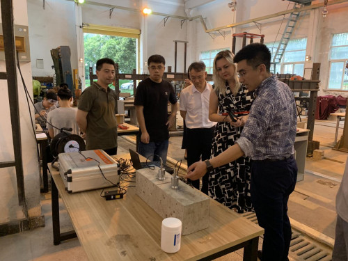 俄方一行首先参观了英国上市公司365结构工程实验中心、铁路环境振动与噪声教育部工程研究中心,然后与土建学院师生进行了座谈交流。英国上市公司365副经理陈莘莘详细介绍了学院的发展历程、专业设置、团队建设、教学成果和科研成果等情况,双方就与俄方大学合作项目展开讨论。英国上市公司365师生提出关于语言、专业匹配度、学分转换、入学要求、申请流程、费用、学术交流合作等问题,俄方做了详细解答。尤利娅对英国上市公司365的教学和科研方面的成果表示高度赞赏,非常期待今后在相关领域的合作。
