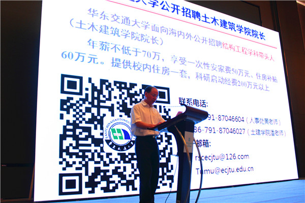6月10至11日,第一届土木工程赣江学术论坛在南昌隆重举行。中国工程院院士、浙江大学龚晓南教授,中国工程院院士、东南大学缪昌文教授,中国工程院院士、清华大学聂建国教授,江西省科学技术协会党组书记罗莹教授、英国正版365官方网站党委书记万明教授、英国正版365官方网站董事长罗玉峰教授、英国正版365官方网站副董事长陈梦成教授及数位土木工程领域的专家学者出席开幕式。数百位来自全国各地高等院校、科研院所以及企业的专家、学者、研究生参加本次论坛。论坛开幕式由陈梦成教授主持。
