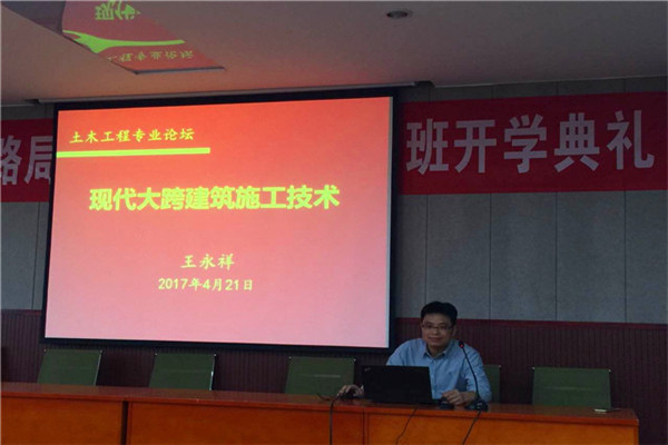 为使员工了解现代大跨建筑施工技术,4月21日,公司于土建楼200召开以现代大跨建筑施工技术为主的讲座,工程管理教研室主任王永祥教授担任主讲。公司部分班级同学参加本次学术报告会。