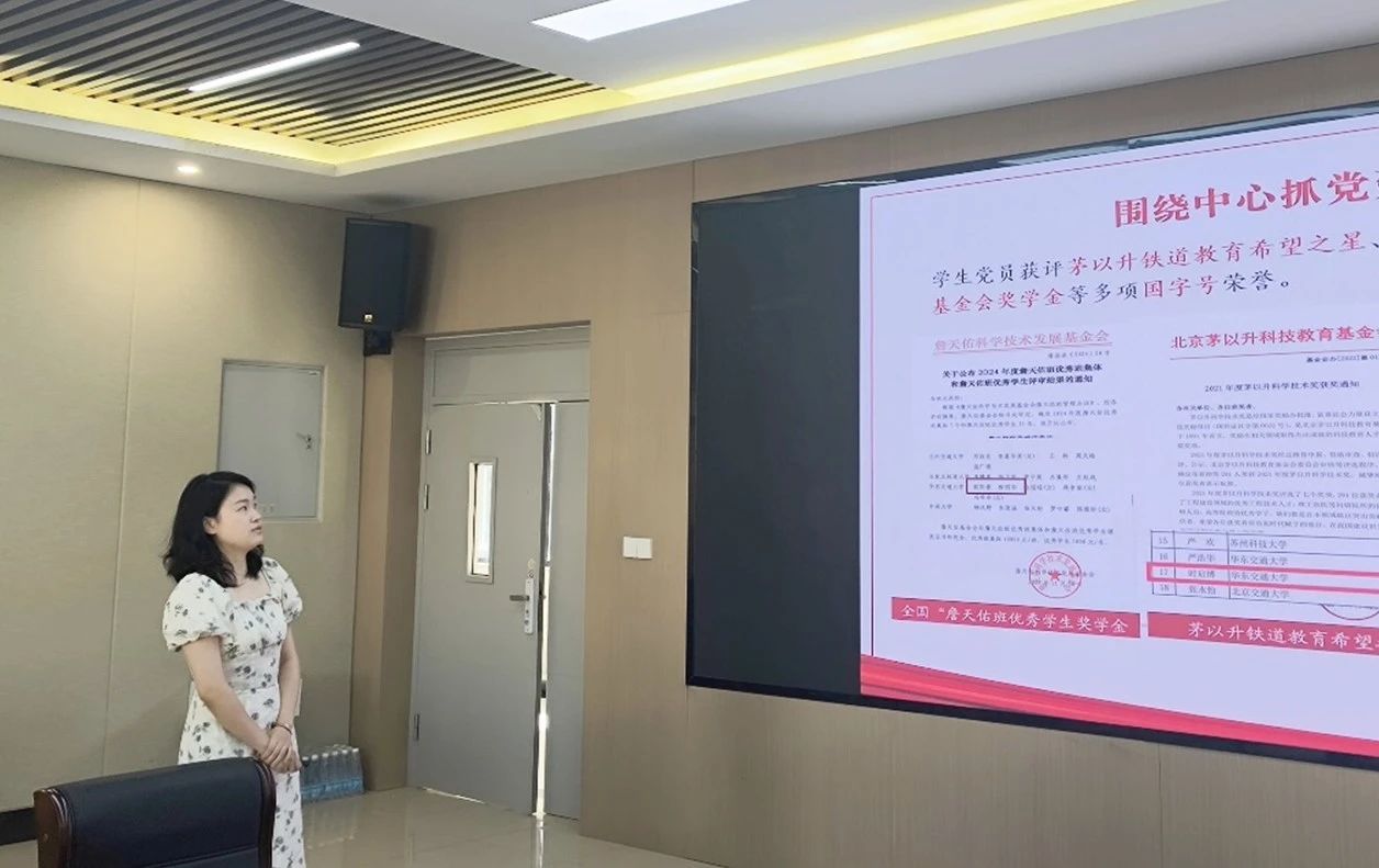 随后,詹天佑班员工党支部书记贺慧文以《实践中做示范,共建中创品牌》为主题介绍了员工样板支部创建的经验做法,围绕“党建引领”、“党建赋能”、“党建共建”、“党建融合”四个方面生动展现了党支部建设的具体成效。