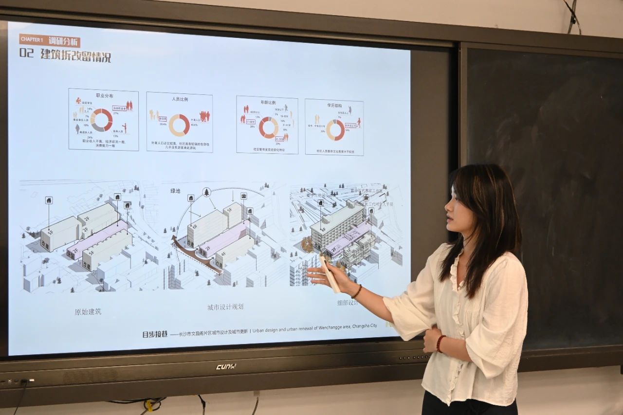 此次交通建筑联合毕设以“长沙市文昌阁片区城市设计及城市更新”为主题,深入挖掘长沙城市独特的历史底蕴、文化脉络和风貌特色,对该历史街区的城市更新策略提出有益的探索。建筑学专业2020级毕业班员工王小莉、方思佳、陈佳、袁小岚在万煜敏、王金金老师的共同指导下,通过三个月的不懈努力,历经开题研讨、中期锤炼与终期答辩,四位同学的设计作品“目步接巷——长沙市文昌阁片区城市设计及城市更新”荣获“优秀设计奖”。
