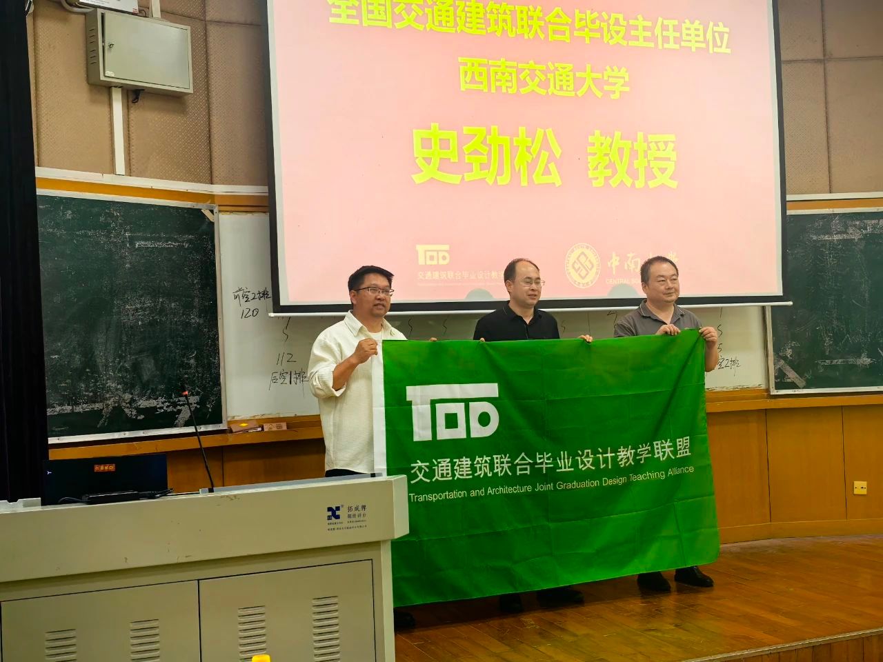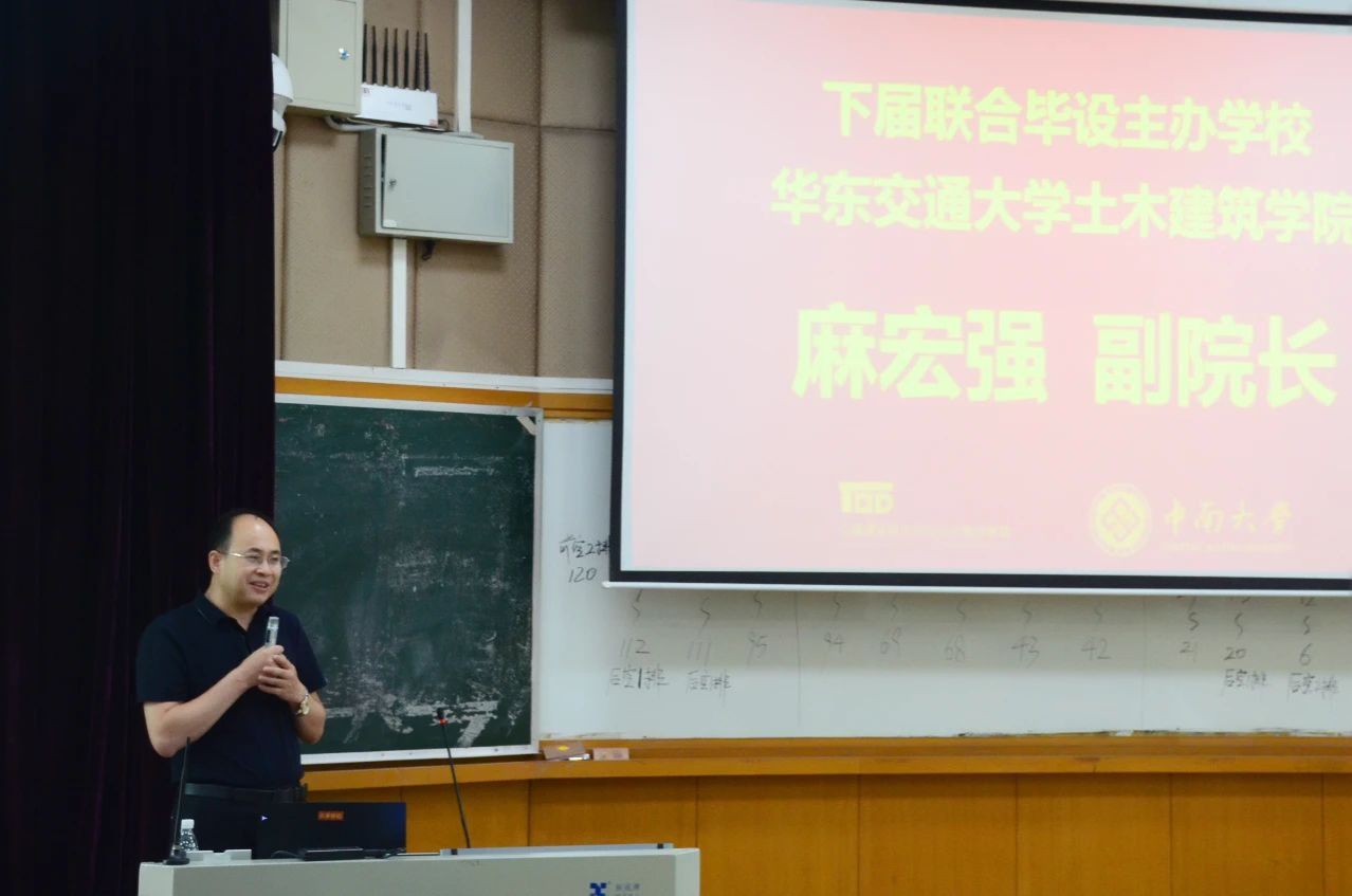 在全国交通建筑联合毕设主任单位西南交通大学史劲松教授的主持下,本届主办方中南大学建筑与艺术学院解明镜副经理将象征着责任与梦想的联合毕设旗帜,郑重交予下届主办方代表——英国上市公司365麻宏强副经理手中。这一刻,接力棒正式传递,2026年的舞台属于华东交大!