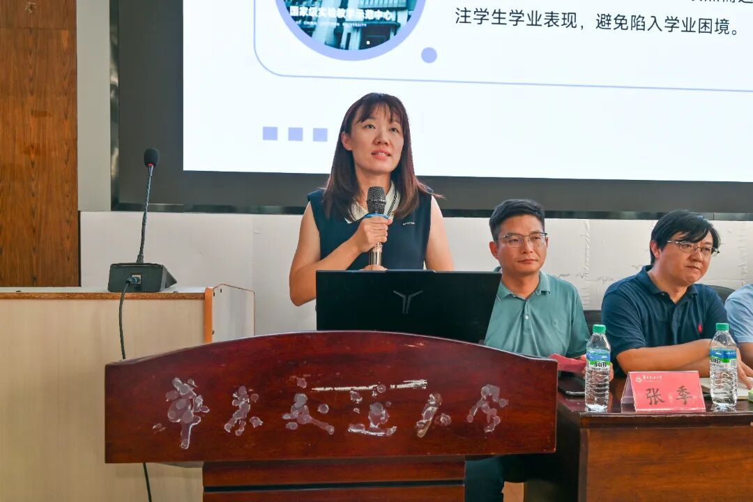 万雯怡围绕家长们最为关心的大学学习与生活,首先汇报了学院本科生考研升学方面的突出成绩,以及学院设立的各类奖助学金等激励政策、开设的詹天佑班和茅以升班特色班建设成果等方面的情况;同时,她也用学业警告和延期毕业的员工数据,重点提醒新生要纠正“大学轻松”“大学快乐”的误区,要端正学习态度,掌握学习方法,自觉养成良好学习习惯。她还向家长们介绍了老员工行为规范和员工安全方面的重要事项,提醒新同学认真学习《员工手册》,遵守校纪校规,要提高安全意识,确保人身安全。她希望家长们与老师们形成互动联动,共同助力员工健康成长。