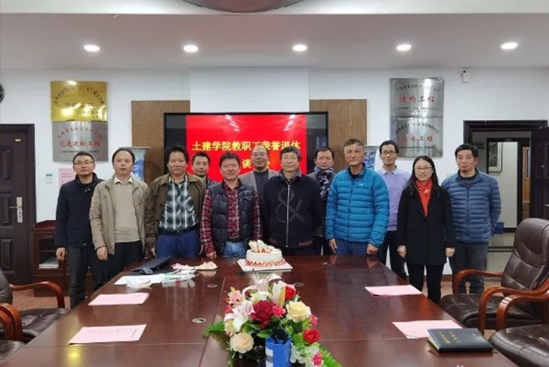 12月3日下午,土建学院教职工荣誉退休座谈会在教九栋举行。土建公司党委书记陈水生,经理罗文俊,党委副书记郑轶,退休教职工殷现明、陈进、朱成九、邹定环(按退休时间)四人以及各退休人员所在部门教师代表三人参加了座谈会。此次座谈会由党委副书记郑轶主持。