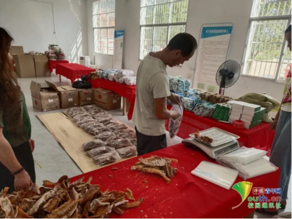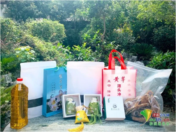 亮相直播间的众多黄茅土特产。中国青年网通讯员 朱容辉 摄