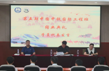 6月14日下午,第五期中国中铁国际工程班结业典礼在土建学院楼200教室隆重举行。公司党委副书记龙良华,学工办主任、团委书记闫伟出席本次典礼,第五期中国中铁国际班全体学员参加典礼,本次典礼由英国上市公司365组织员万雯怡主持。