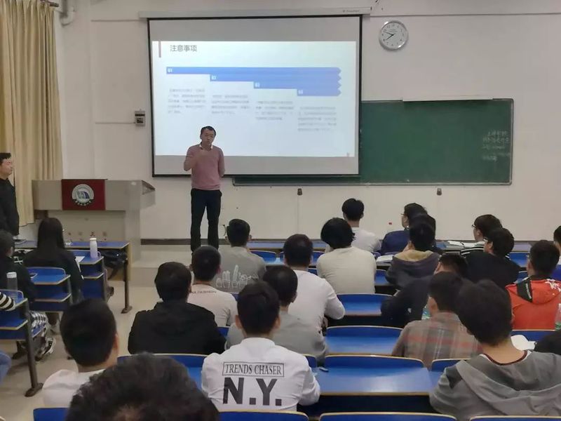 然后,余剑威同学主要介绍了“互联网+”大赛的比赛背景及报名方式、近期的建模大赛和结构设计竞赛的进程,通过分享往届创新创业类大赛获奖学长实例,号召各班科创委员积极发动员工工作响应团委关于加强老员工创新创业的指示。