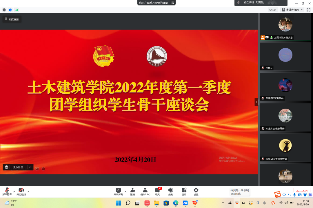 公司党委副书记郑轶老师、团委副书记刘伟老师、团委兼职副书记贺慧文老师出席会议,会议由学院团委书记、学工办主任万雯怡老师主持,院团委、员工会秘书处、分研会主要员工骨干、各年级班长、团支部书记等主要员工骨干参加会议。